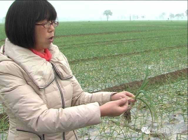 农林局植保站站长王慧琴通过实地察看大蒜蒜叶发黄问题以后,这样告诉大家:目前我们县这个大蒜,播种早的田块现在已经是退母期,蒜瓣里面的营养已经消耗殆尽,(现在)植株的生长需要从地里面汲取营养,这也是一个过渡阶段,但是这个阶段之间出现了气候条件连续阴天、下雨,田间湿度比较大;再一个没有阳光,不能进行光合作用,直接造成植株生长比较瘦弱,所以说(植株)抵抗病虫害的能力比较弱,各种病菌一侵入,容易得各种病害,像现在的叶枯病,造成下部叶片发黄的多种原因,一个是细菌性的软腐病,再一个还有叶腐病,生理性的黄叶干尖,(以及)下部被根曲危害以后的(根)已经坏死造成叶片发黄甚至于枯死,这是几种原因造成的。